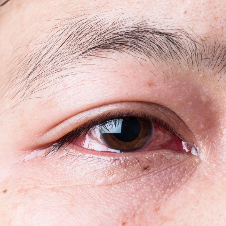 - الشعور بعدم الراحة أو بألم في العين المصابة.