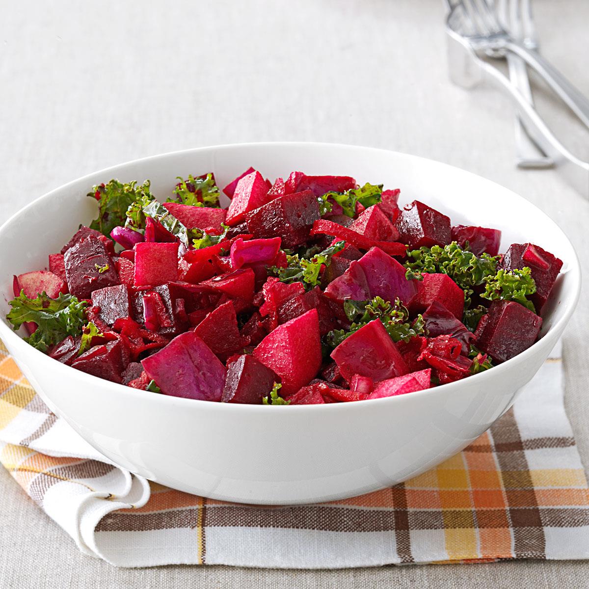 سلق الشمندر في المياة المغلية ويتم اضافته إلي السلطة.