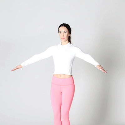 - افتحي ذراعيك بشكل أفقي قدر الإمكان واجمعيهما معًا مرة أخرى.