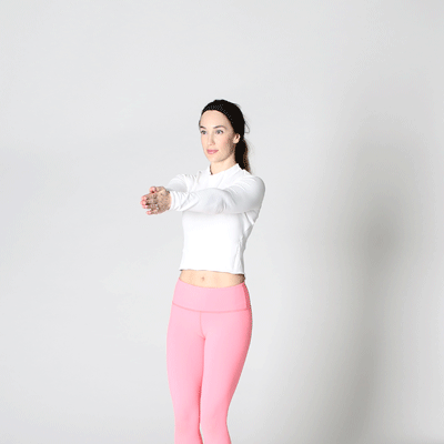 - افردي ذراعيك أمام جسدك واثنيهما بزاوية 90 درجة.