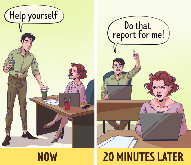 في الغالب يلجأ المتلاعبون إلى مواقف ودوافع معينة تمكنهم من إستغلال الأخرين مثل مساعدتك في العثور على عمل جديد أو تقديم هدية ثمينة وبعدها يطلبون منك القيام بأمور لهم بحيث لا تستطيعي الرفض، كل ما عليكِ هو التلخص من الدافع وإرجاع الهدية او المساعدة له وترفضي تنفيذ اوامره وطلباته.