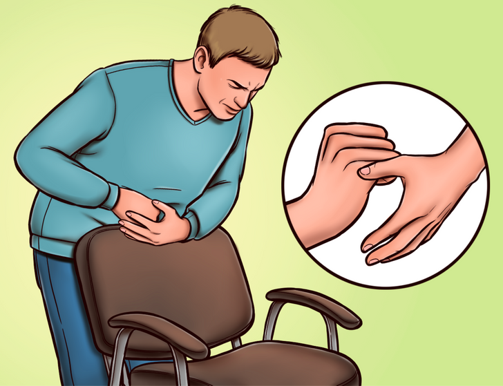 - اضغط بحركات سريعة وخفيفة في منطقة المعدة وإذا لم يكن هناك من يساعدك فاستخدم الكرسي وضعه أمام المريض كوسيلة للدفع.