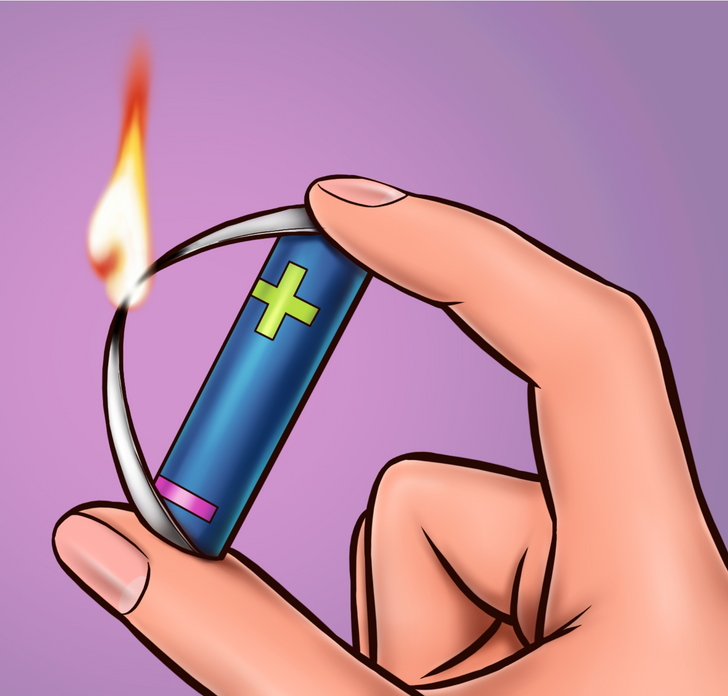 إذا كنت في احدى رحلات السفاري او البرية وليس لديك اعواد ثقاب لإشعال النار فمن خلال بطارية وعلكة مغلفة تستطيع إشعال النيران، اقطع غلاف العلكة واحرص على ان يكون منتصف الشريط هو انحف جزء فيه وضع الأطراف المعدنية للرقاقة التي صنعتها من غلاف العلكة على جانبي البطارية السلبي والايجابي حتى تشتعل الرقاقة.