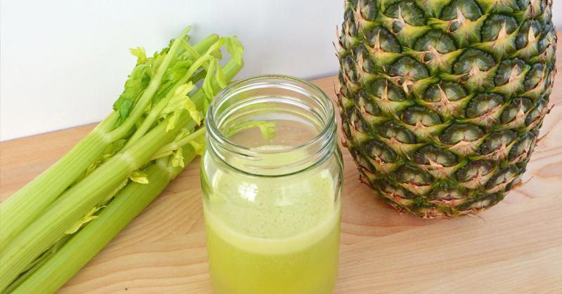 المكونات: (4 قطع جزر – 6 جزوع الكرفس – بعض من السبانخ – بعض من البقدونس – ربع قطعة أناناس – حبة ليمون).