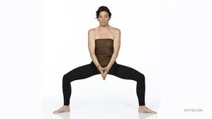 أبقِ قدميك متباعدتين وأصابع قدميك متجهة إلى الخارج. اجلس في وضع القرفصاء مع بقاء الظهر مستقيماً. ارفع ذراعيك لأعلى واجعلهما متوازيين مع كتفيك وافتح راحة يدك إلى السماء، تساعد هذه الوضعية أيضاً علي استقامة العمود الفقرى والتخلص من الألام الشديدة.