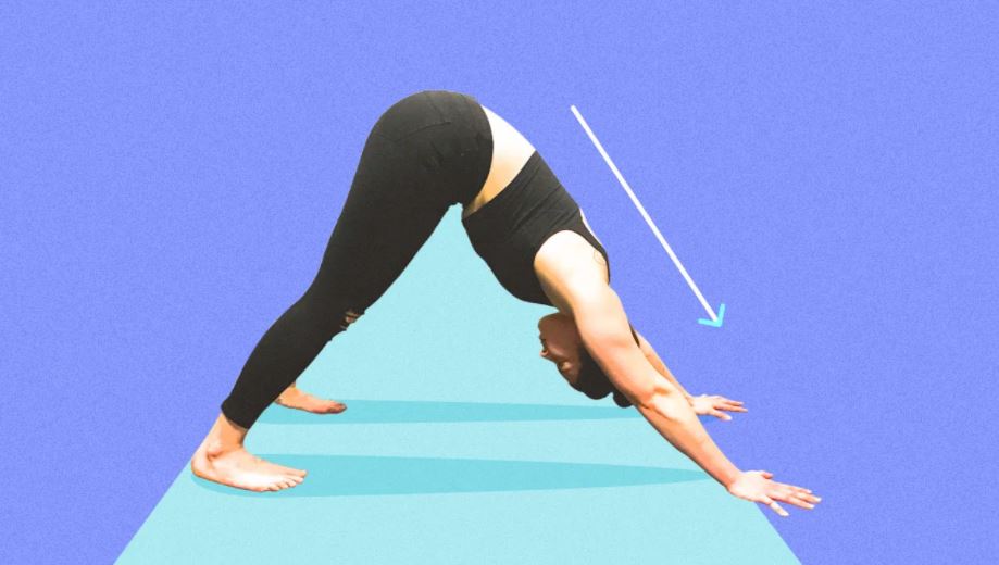 في هذا التمرين يتم مد العنق للأسفل وأيضًا مد أوتار الركبة، وهذا يساعد على تخفيف آلام الرقبة والأوراك المشدودة من الجلوس طوال اليوم في نفس الوضعية، وقد تحدث هذه الحالة بشكل خاص للأشخاص الذين يعملون على أجهزة الحاسوب.