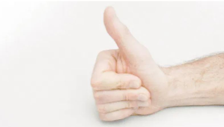ضع حافة جانب الخنصر ليدك على طاولة توجيه ابهامك للأعلى، ثبت ابهامك في نفس الوضع وقم بثني بقية الأصابع للداخل حتى تصبح يدك على شكل "L".