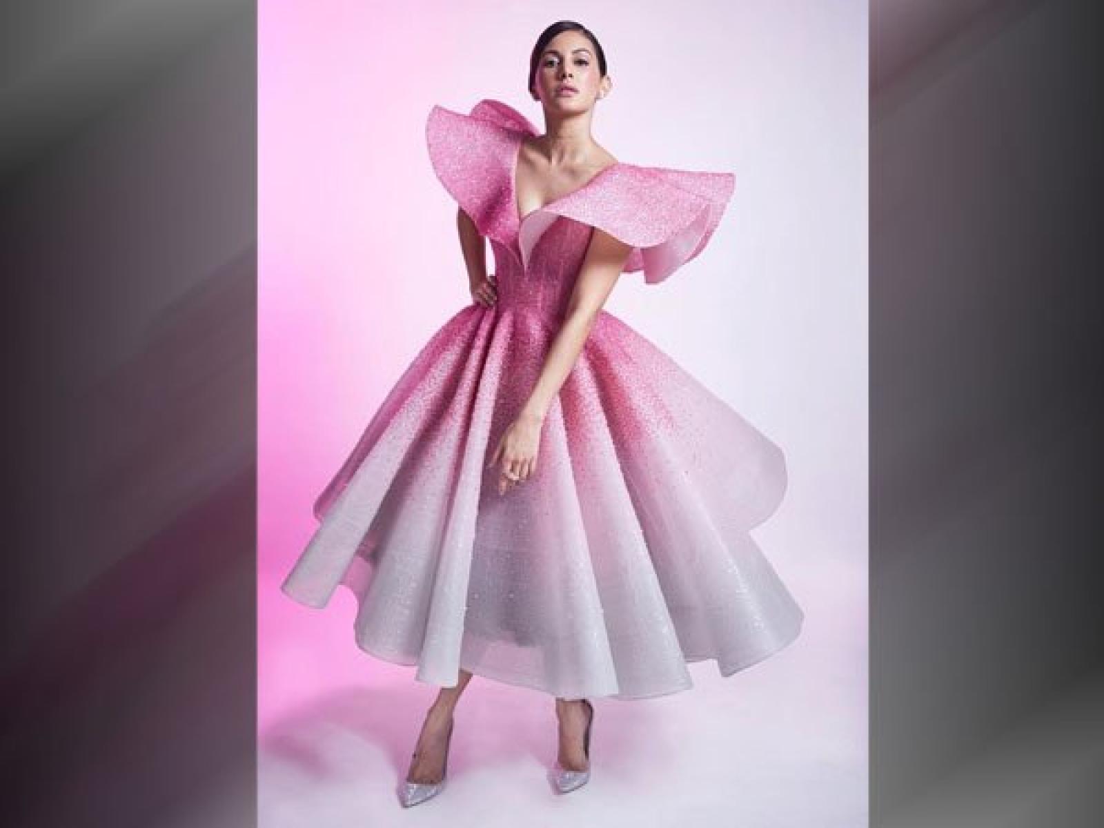 أميرا دستور: ظهرت الممثلة الهندية أميرا دستور بفستان أسطوري وبدت كأنها أميرة خرافية حيث ارتدت فستانًا لأمعًا مفضضًا من تصميم مايكل سينكو من اللونين الأبيض والزهري ورفعت شعرها للوراء بمكياج وردي.