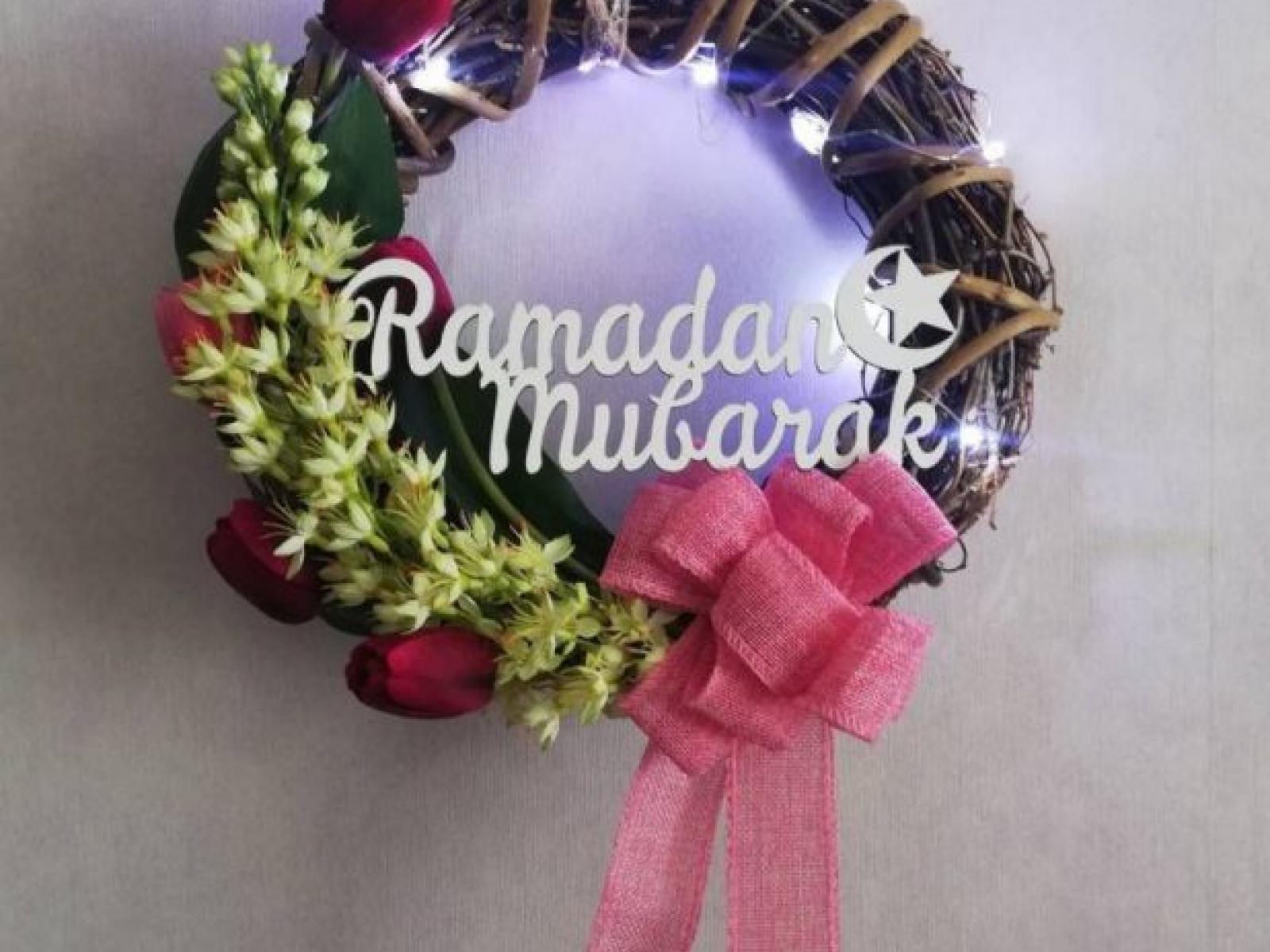 الإكليل الوردي سيشكل إضافة مثالية لزخرفة منزلك في رمضان، ويمكنك شرائها من أي موقع هدايا على الإنترنت أو صنعها في المنزل باستخدام الزهور الطازجة وشرائط الساتان مع عبارة "رمضان مبارك" مكتوبة في منتصف الإكليل. كما يمكنك تعليقه على باب منزلك أو في منزلك لإثارة الروح المعنوية خلال شهر رمضان المبارك.