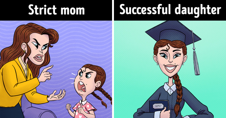 هذه الشخصية من الأمهات تجعل هناك تساوٍ في الحقوق والواجبات بين الأم والابنة فالعلاقة هنا متعادلة حتى تستطيع كلتاهما منافسة إحداهما الأخرى في إبراز من الأفضل في مجال معين وتلك الشخصية تجعل بناتها في المستقبل يصبحن أكثر مسئولية ويتمتعن بالمهارات القيادية وعلى قدر عالٍ من المسئولية ولكن في الوقت نفسه ستُنمى هذه الطريقة لديهن الشعور بالإهمال العاطفي والرفض.