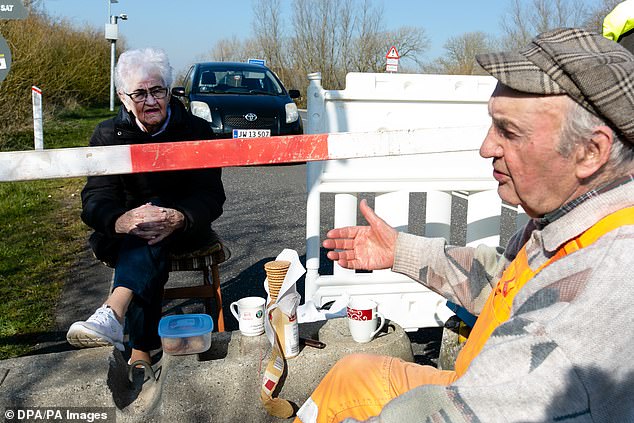ويجتمع المسنان على الحدود المغلقة ببلديهما، وذلك بشكل يومي لتناول مشروب والتحدث إلى بعضهما البعض، وسط إغلاق الحدود بسبب فيروس كورونا.