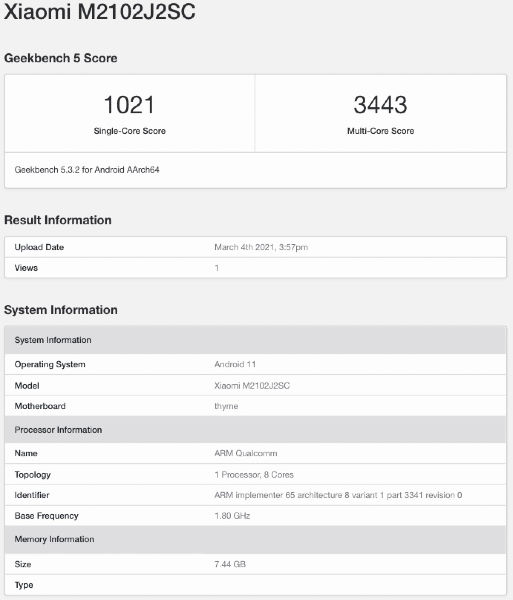 وتشير التقارير إلى أن الهاتف الذي يحمل رمز M2102J2SC، سيحتوي على معالج كوالكوم سناب دراجون 870 بتردد 1.80 جيجاهرتز.