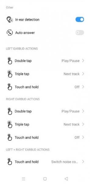 وستأتي سماعات ريلمي بودز اير 2 بميزة كشف عملية وضع السماعات تلقائياً والرد التلقائي، كما ستقدم ريلمي إيماءة جديدة تتيح للمستخدم لمس سماعات الأذن اليمنى واليسرى في نفس الوقت بشكل مستمر لتبديل وضع إلغاء الضوضاء، وهو تحسن ملحوظ عن الجيل الأول الذي تطلب ضبط سماعة تلو الأخرى.