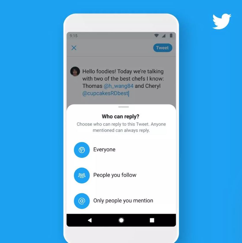 أعلن موقع تويتر يوم الأربعاء أنه يتم حاليًا اختبار إعدادات جديدة تتيح للمستخدم اختيار من يمكنه الرد على تغريدته والتفاعل معه خلال المحادثة.