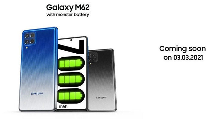 كشف متجر شركة سامسونغ الرسمي في الفلبين وحساب الشركة في ماليزيا عن موعد الإعلان الرسمي عن "سامسونغ جالكسي إم 62" Samsung Galaxy M62، والذي سيتم طرحه في 3 مارس المقبل.