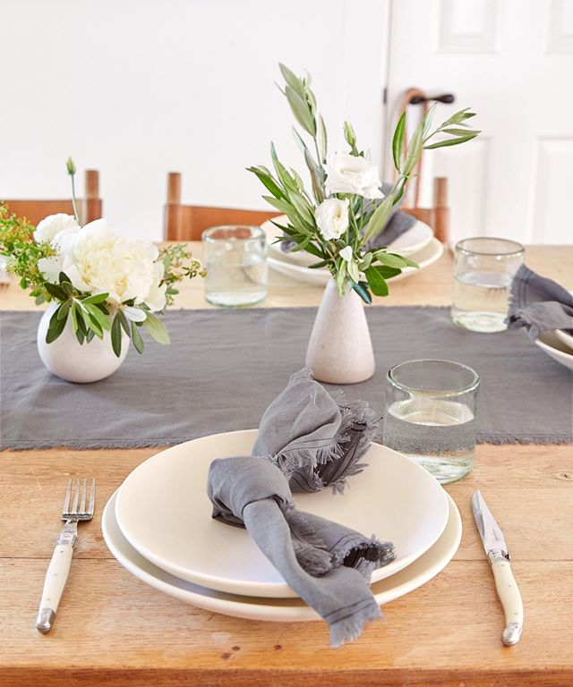 يجب أن يبدأ كل إعداد للطاولة من مكان ما، ابدأي بمفرش المائدة، ويفضل أن يكون لونه حيادياً كالأبيض أو البيج.