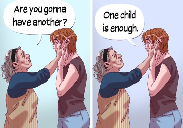 إذا وجه اليكِ أحدهم سؤال متى ستنجبين طفلك الثاني يمكنكِ الرد ببساطة بقول شكرًا على اهتمامك وقومي بتغير الموضوع لإتجاه آخر.