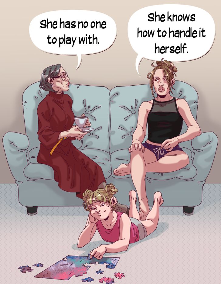 احيانًا يلجأ المتطفلون لإشعارك بالذنب أن طفلك وحيد ولا يجد من يؤنسه فيمكنكِ الرد على ذلك أن الوحدة شعور من الممكن أن نختبره أثناء تواجدنا بين عدد كبير من الناس وليس شعور فردي نتيجة العزلة.