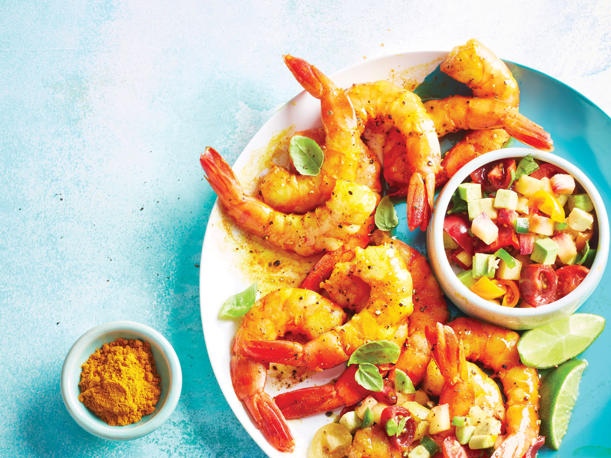 احصل على أقصى استفادة بهذا الطبق المتنوع والذي يحتوي على الجمبري والأفوكادو، وضعها في صلصة منعشة مصنوعة من الخوخ والطماطم والهالبينو.