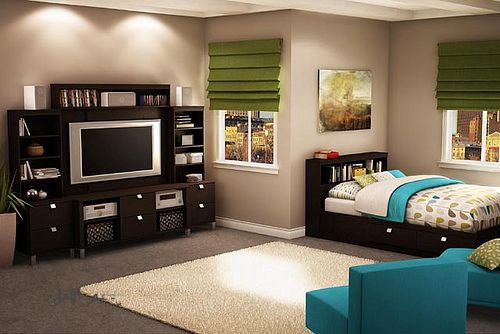 أولاً: من المهمّ اختيار مفروشات تتّسع لكمبيوتر المحمول، أو تلفاز، أو لعبة رقميّة،وننصحك باختيار أجهزة التلفاز التي يُمكن تعليقها على الحائط، إذ إنّها تُفسح المكان أمام وضع أغراض أخرى.