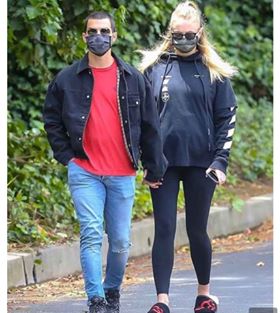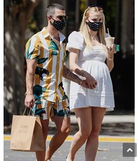 ظهرت الجميلة صوفى برفقة زوجها جوناس براذرز، مرتدية فستان صيفي أبيض قصير، كانت تشع جمالاً، بالإضافة إلى كون الفستام مريحاً للغاية لنوءة حملها. وقد ظهر الثنائي مرتدياً قناع وجه باللون الأسود المنقط.