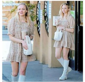 ظهرت ترينر بفستان بيج مخطط، واعتمدت علي بوت أبيض طويل وحقيبة باللون الأبيض، وبدت في غاية البساطة والأناقة.