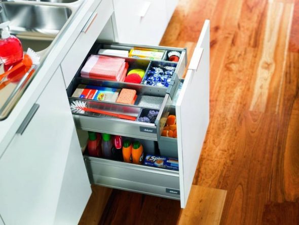 - أحد أفضل الطرق لتوفير مساحة تخزين أكبر هو استبدال الرفوف الثابتة بأرفف قابلة للسحب. سيسهل عليك الوصول إلى العناصر الموجودة في الخلف والتي غالباً ما تمر دون أن يلاحظها أحد.
