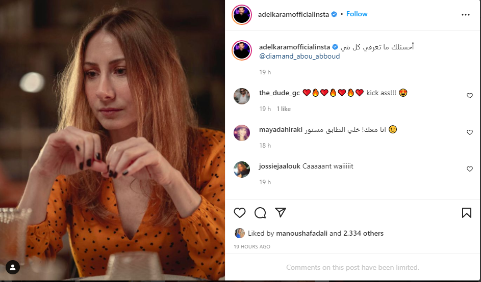 وكانت رسالة عادل كرم موجهة لمواطنته الفنانة ديامان بو عبود، وجاء فيها: "أحسنلك ما تعرفي كل شي".