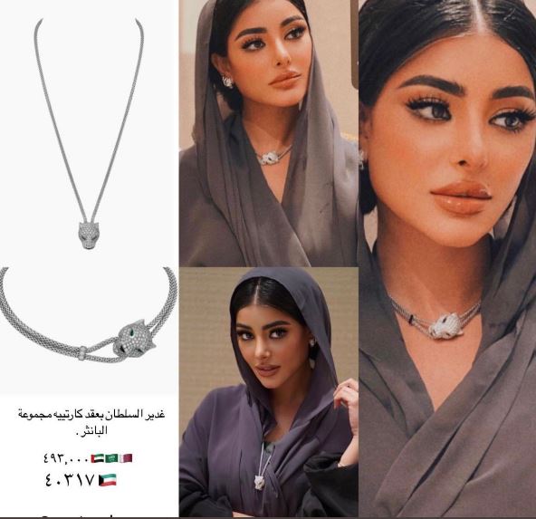 كما تداول الجمهور صورة للفاشنيستا الكويتية وهي تضع الشالة على رأسها حيث قال البعض إنها حرصت على ارتدائها بعد زواجها، وظهرت في الصورة وهي ترتدي عقد من كارتير بقيمة 441,000 ريال وبحسب المعلومات المتداولة فإن العقد هذا هو "الشبكة" التي قدمها العريس لها