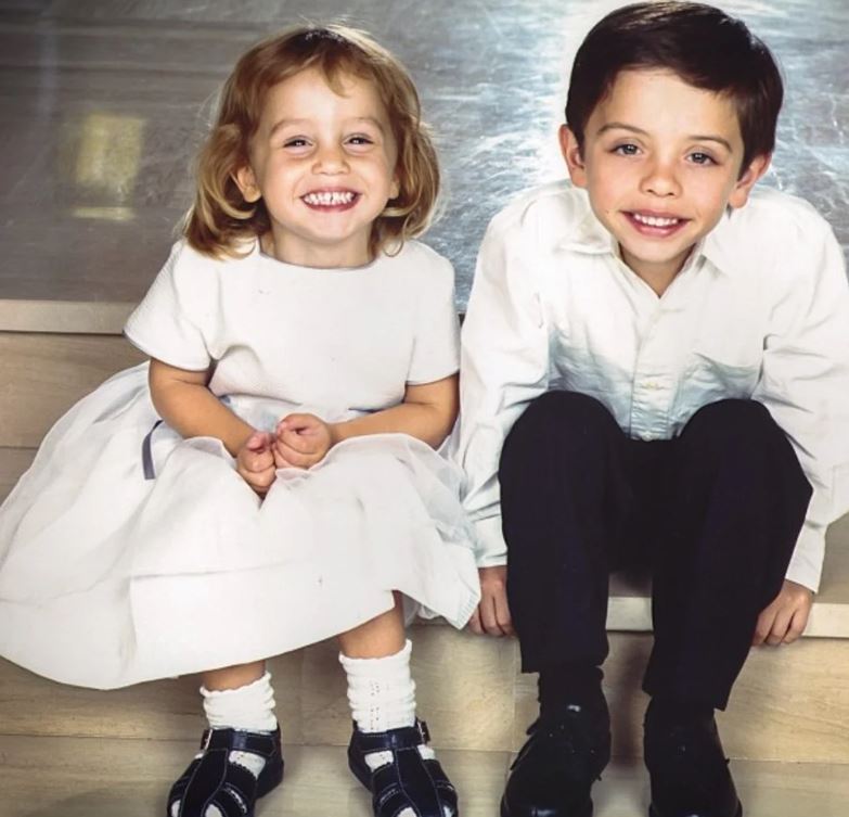 ونختتم هذه الصور بصورة من طفولة الأميرة الأردنية تجمعها بشقيقها ولي العهد الحسين بن عبدالله الثاني