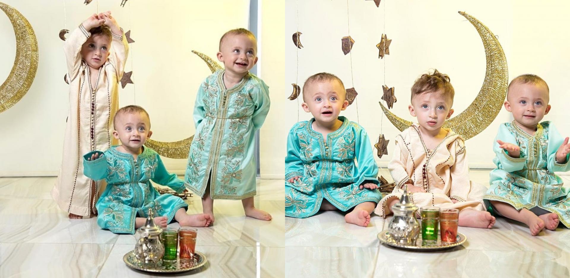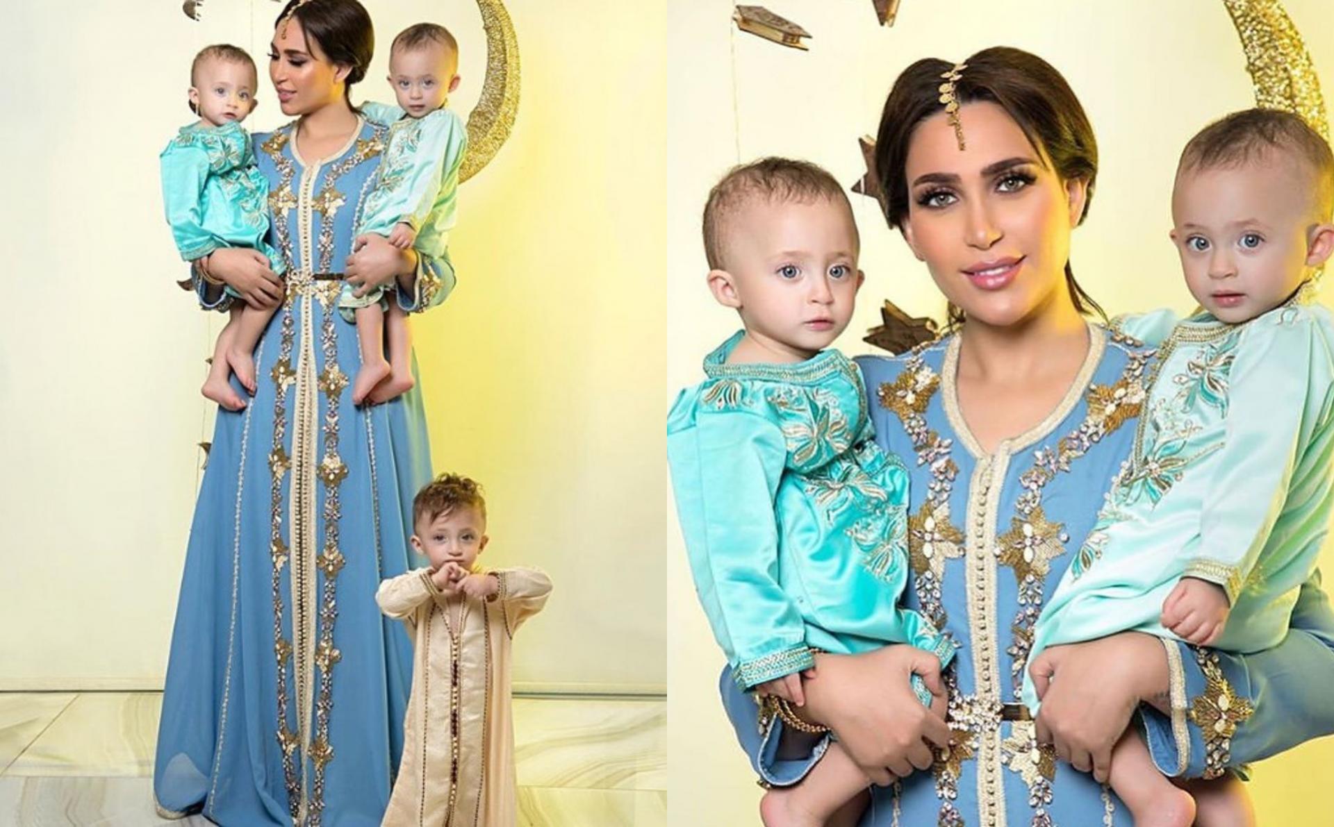 شاركت الفاشنيستا الكويتية الدكتور "خلود" صور جديدة لتوائمها الثلاثة من أحدث جلسة تصوير بالزي المغربي من أجل التهنئة بحلول شهر رمضان.