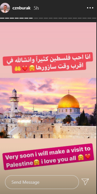 في نفس السياق وبعد انشار الفيديو، نشر بوراك صورة عبر "ستوري" حسابه الرسمي على انستغرام، لقبة الصخرة واكتب عليه بالعربية والانجليزية، "أنا أحب فلسطين كثيرًا، وانشالله في أقرب وقت سازورها".