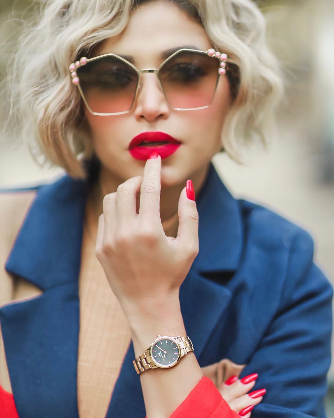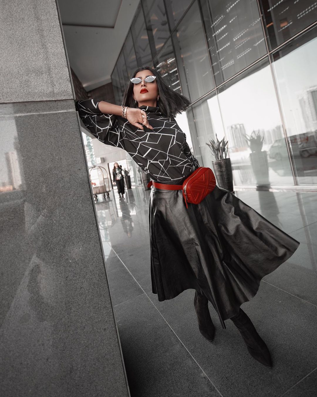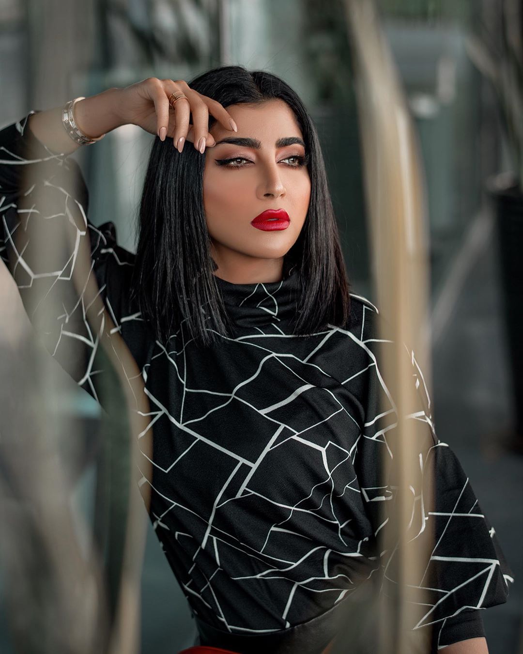 لا أحد يضاهي جمال الفاشونيستا العُمانية التي تتمتع بملامح حادة وجذابة، ولديها قدرة رهيبة في إبراز جمالها بمستحضرات التجميل، وهنا اعتمدت اللون الأحمر لشفاها و إطلالة سوداء.