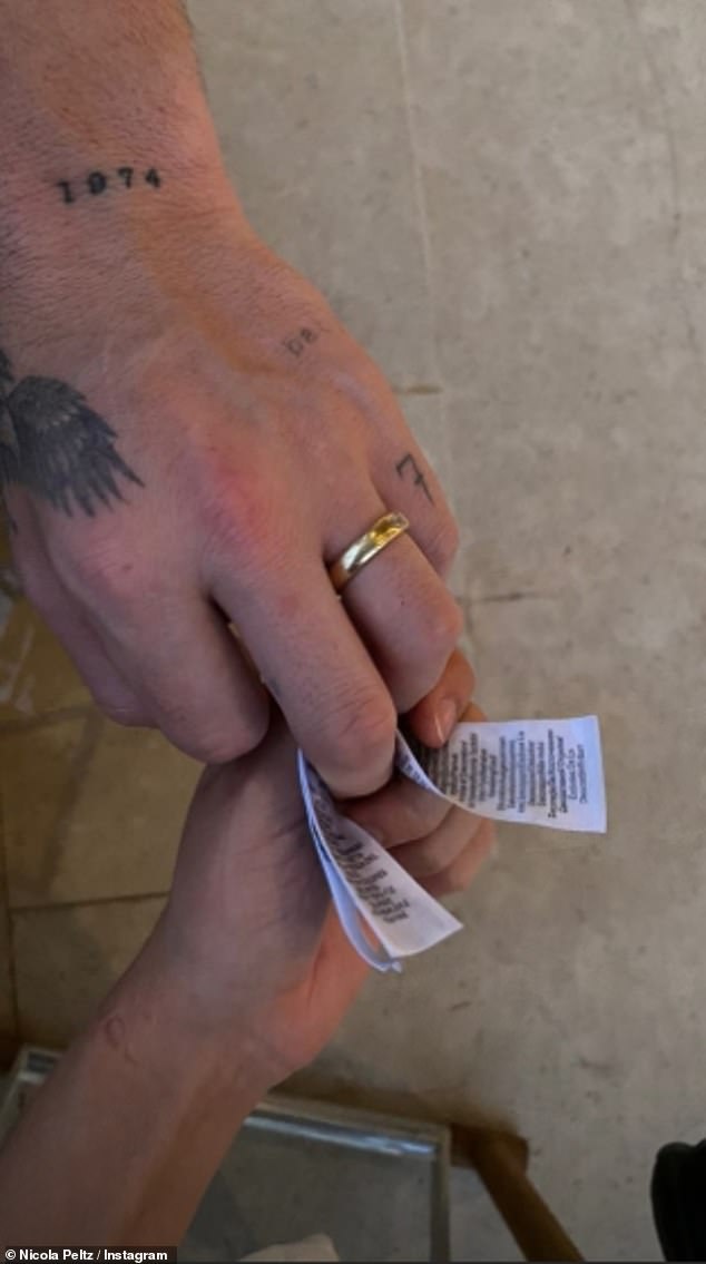وسرعان ما عادت التكهنات والشائعات مرة أخرى، بعد أن ألمحت نيكولا بيلتز إلى أنها وخطيبها بروكلين بيكهام قد تزوجا في السر بعد مشاركة صورة لخاتم ذهبي على إصبع بروكلين. وأظهرت الصورة، التي شاركتها نيكولا البالغة من العمر 25 عامًا يوم الجمعة على خاصية إستورى بمنصة إنستغرام، الثنائي وهما يمسكان بعلامة تجارية، حيث كان بروكلين يرتدى خاتمًا ذهبيًا على يده اليسرى.