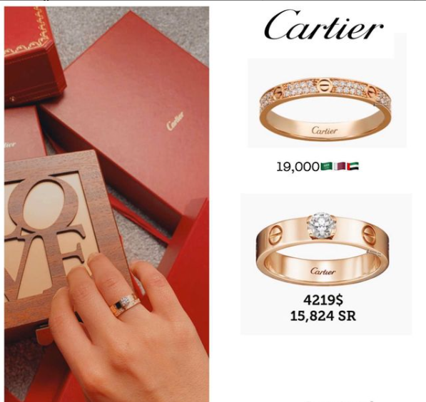 كما كشفت عن خاتم الخطوبة الذي تلقته من خطيبها الذي لم تعلن عن هويته حتى هذه اللحظة والذي جاء من دار "كارتيه" العالمي وتحديدًا من مجموعة Love الفاخرة.