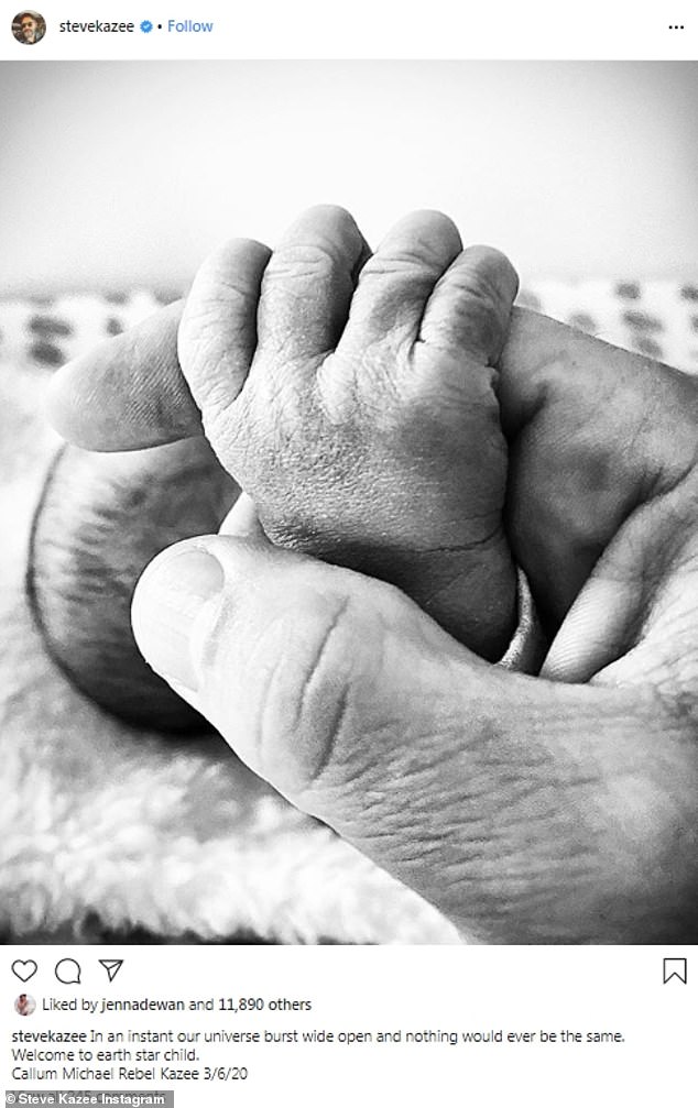 أما كازي فقد نشر صورة بالأبيض والأسود وهو ممسك يد طفله وكتب تعليقًا: "مرحبًا بك إلى الدنيا أيها الطفل النجم، كالوم مايكل ريبل كازي 6/3/20 وبهذين المنشورين أعلن الثنائي لأول مرة الخبر السعيد لمحبيهما ومتابعيهما وبعدها نشرت ديوان صورة وهي ترضع طفلها".