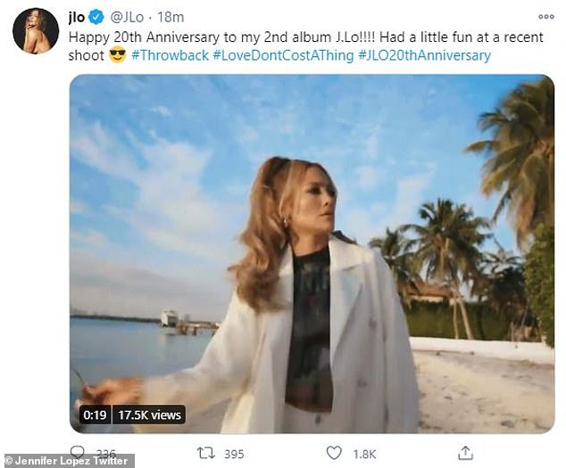 ونشرت جينيفر يوم السبت الماضي مقطع فيديو عبر حسابها الخاص على "تويتر" قالت فيه: "الذكرى العشرين لألبومي الثاني J.Lo لقد كان لدي القليل من المرح في جلسة التصوير الأخيرة.