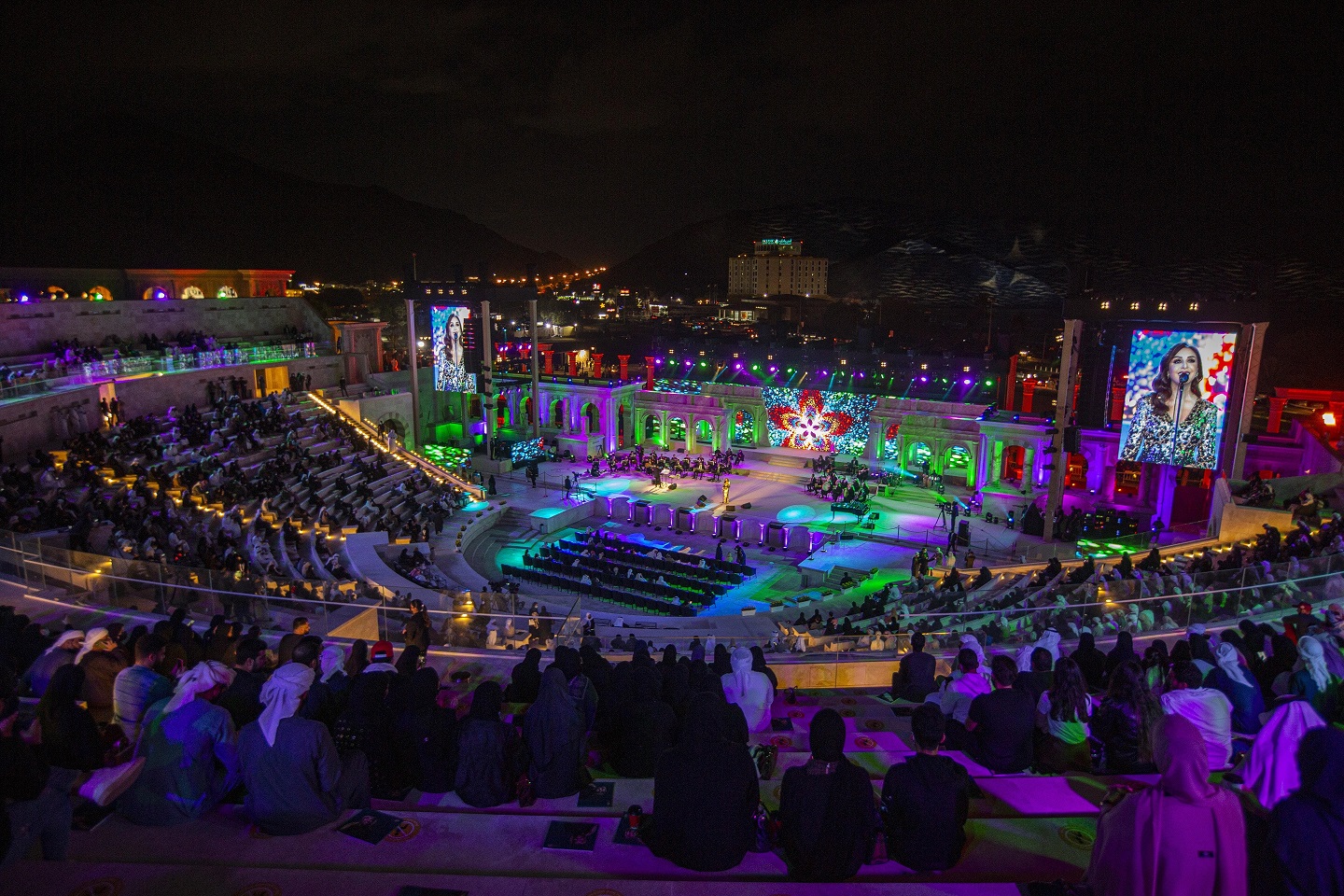 من على مدرج خورفكان، التحفة المعمارية ذات الطابع الروماني التي تطل من جبال المدينة على شواطئها، حمل النجم حسين الجسمي والنجمة أنغام جمهور الغناء العربي نحو أمسية غنائية ساحرة، وسجلا بأعمالهم التي مزجت بين عراقة اللحن وعذوبة الصوت والإحساس تاريخ أول حفل يقام على المدرج، لتعلن خورفكان بداية فصل جديد للفن والجمال في إمارة الشارقة.