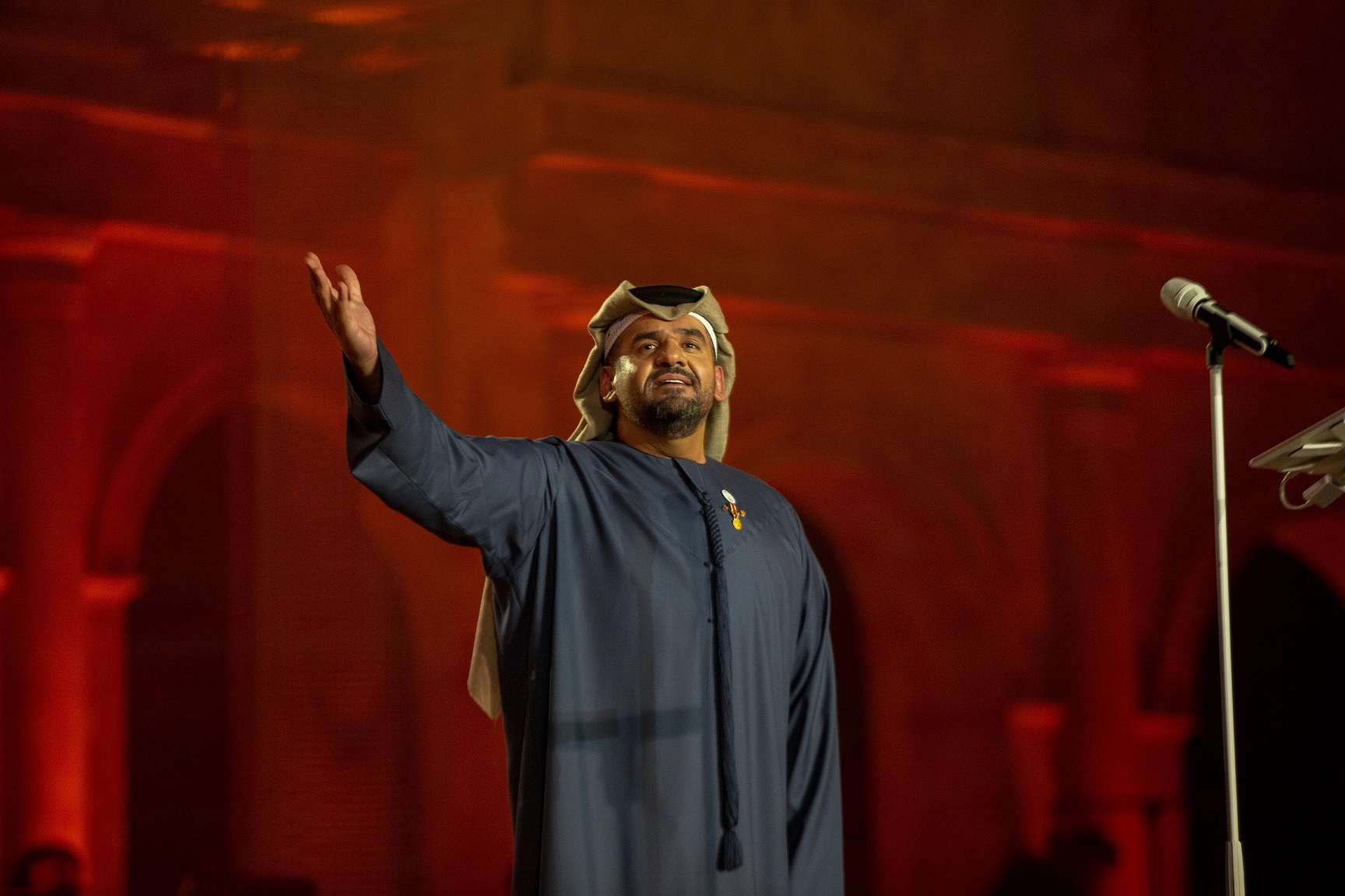 وطاف نجم الإمارات يقدّم إبداعاته حيث غنّى لعشّاقه "مهم جداً" التي وجدت طريقها إلى قلوب مستمعيها، ليشدو بعدها برائعة الفنان الكويتي الكبير عبد الكريم عبد القادر "مرني"، ويشعل بعدها مدرجات المسرح بأغنية "ستة الصبح"، وفي مشهد فنيّ اعتاد عليه جمهوره انتقل النجم الإماراتي للعزف على آلة البيانو ويقدّم أغنية (أول عشق) من كلمات سمو الشيخ حمدان بن محمد بن راشد آل مكتوم، ولي عهد دبي، التي تفاعل معها الجمهور مشكّلاً لوحة بصرية بأضواء الهواتف.
