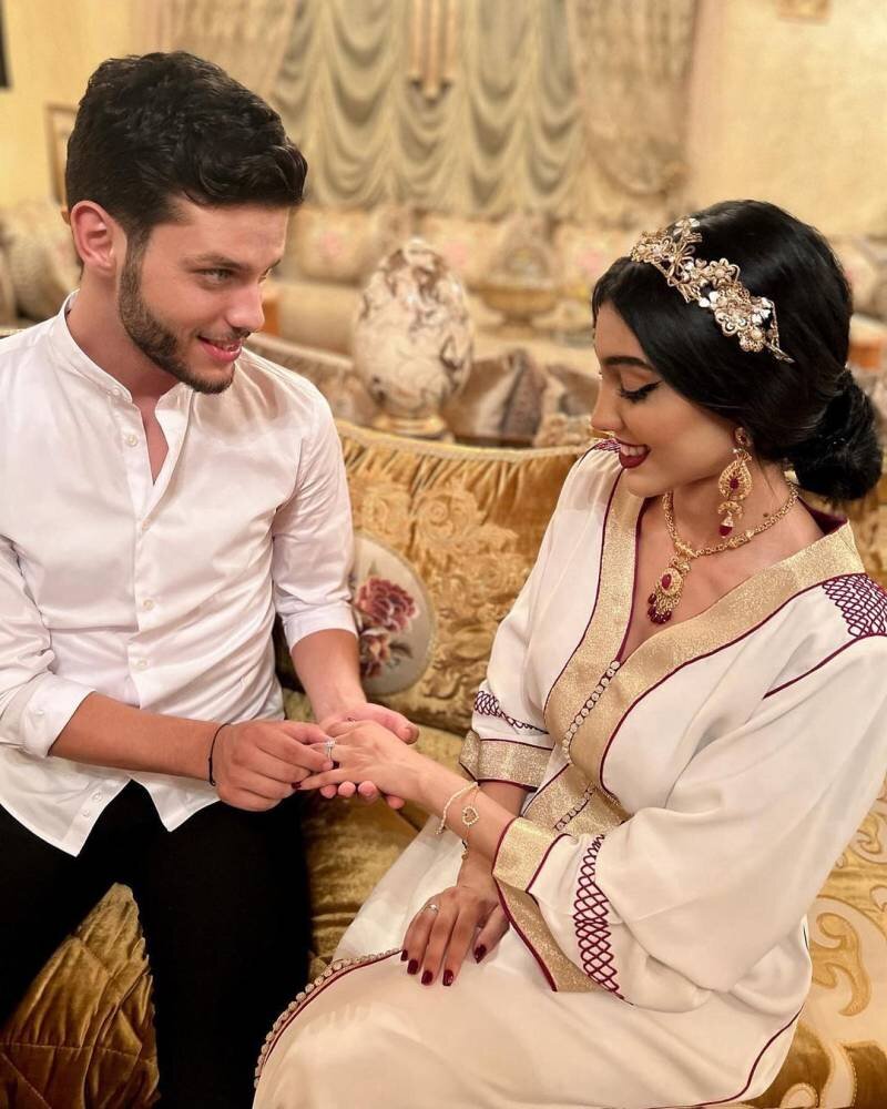 ومن جانبها نشرت إيمان عبر حسابها الخاص العديد من صور الخطوبة وتألقت العروس بقفطان باللون البيج مع تطريزات باللون الذهبي والبني.