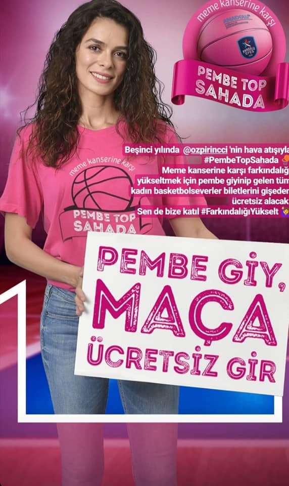 وأصبحت رمي الكرة الوردية من قبل واحدة من نجمات تركيا في شهر أكتوبر وهو شهر الذي تم اختياره للتوعية بسرطان الثدي من كل عام عادة سنوية، بدأت منذ ما يقارب الثمان سنوات. وتم سن هذه العادة بالتعاون مع مركز الأناضول الطبي ونادي أناضول إيفس الرياضي. واختيار اللون الوردي للكرة بسبب أن هذا اللون هو اللون المعروف لسرطان الثدي.