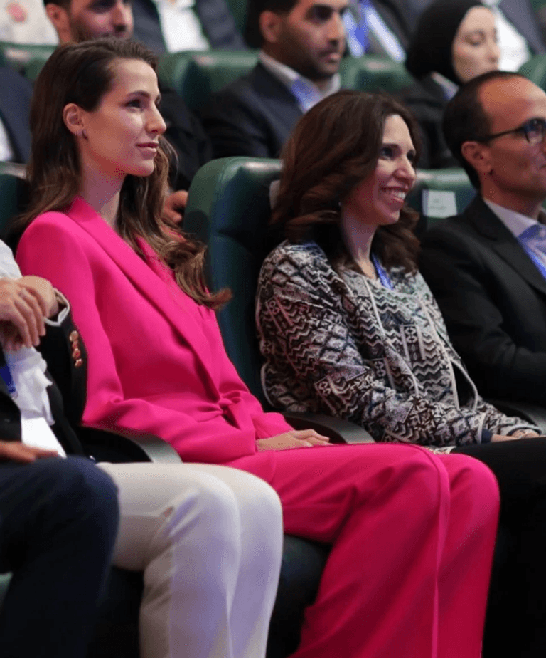 تألقت رجوة آل سيف خطيبة ولي العهد الأردني الأمير الحسين بن عبدالله خلال تواجدها في منتدى "تواصل: حوار حول الواقع والتطلعات بإطلالة وردية من زارا Zara.