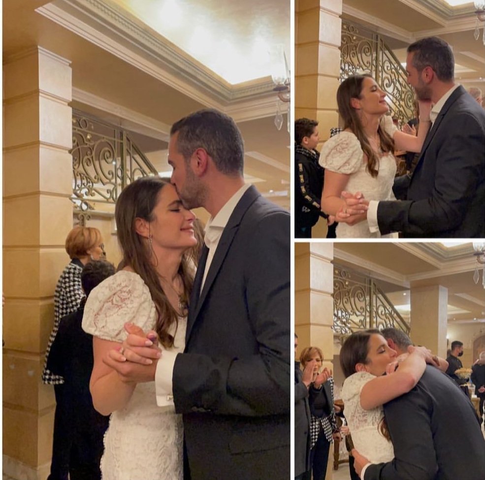 وتألقت شام بفستان طويل باللون الأبيض، بأكمام قصيرة منفوخة وكتف مكشوف، وتركت شعرها منسدلًا مع مكياج بسيط في إطلالة وصفت بـ غير المتكلفة، وتألق العريس ببدلة باللون الرمادي مع قميص باللون الأبيض.