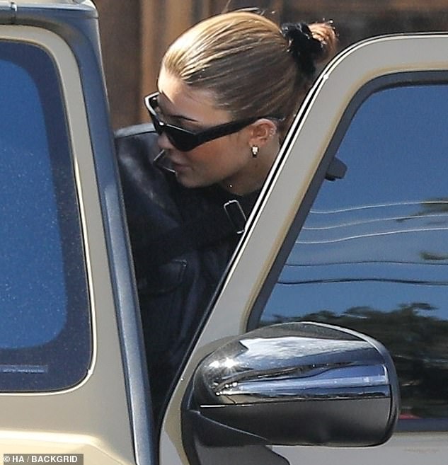 وكانت كايلي ترتديه وهي تجلس على كرسي جلدي بينما تحمل حقيبة هيرميس بيركين الأرجوانيّة البالغة قيمتها 150 ألف دولار على قدميها.