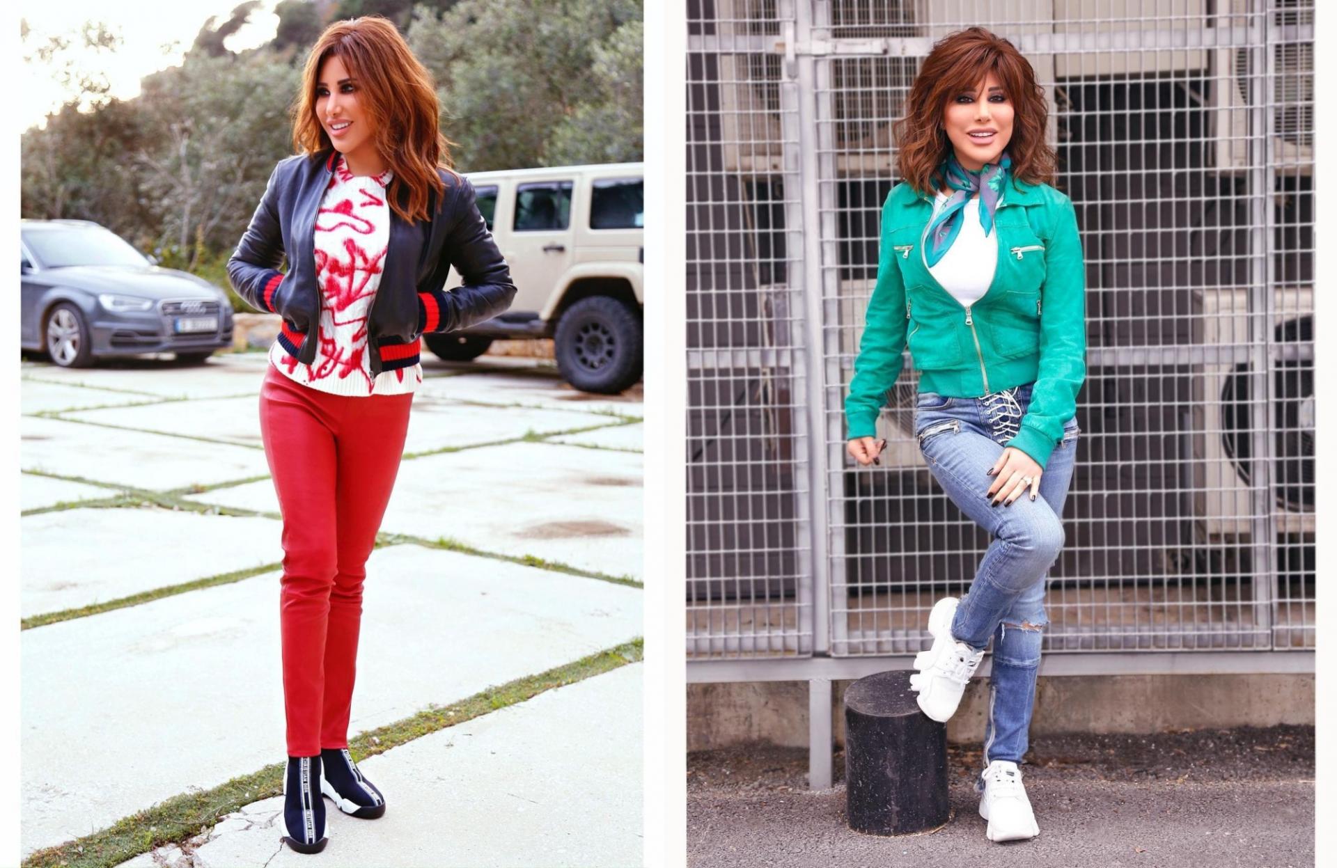 خلال التدريبات أطلت نجوى بستايل كاجول شبابي ما بين بنطلون جينز وآخر باللون الأحمر، وأضافت لهما جاكيت بألوان مختلفة