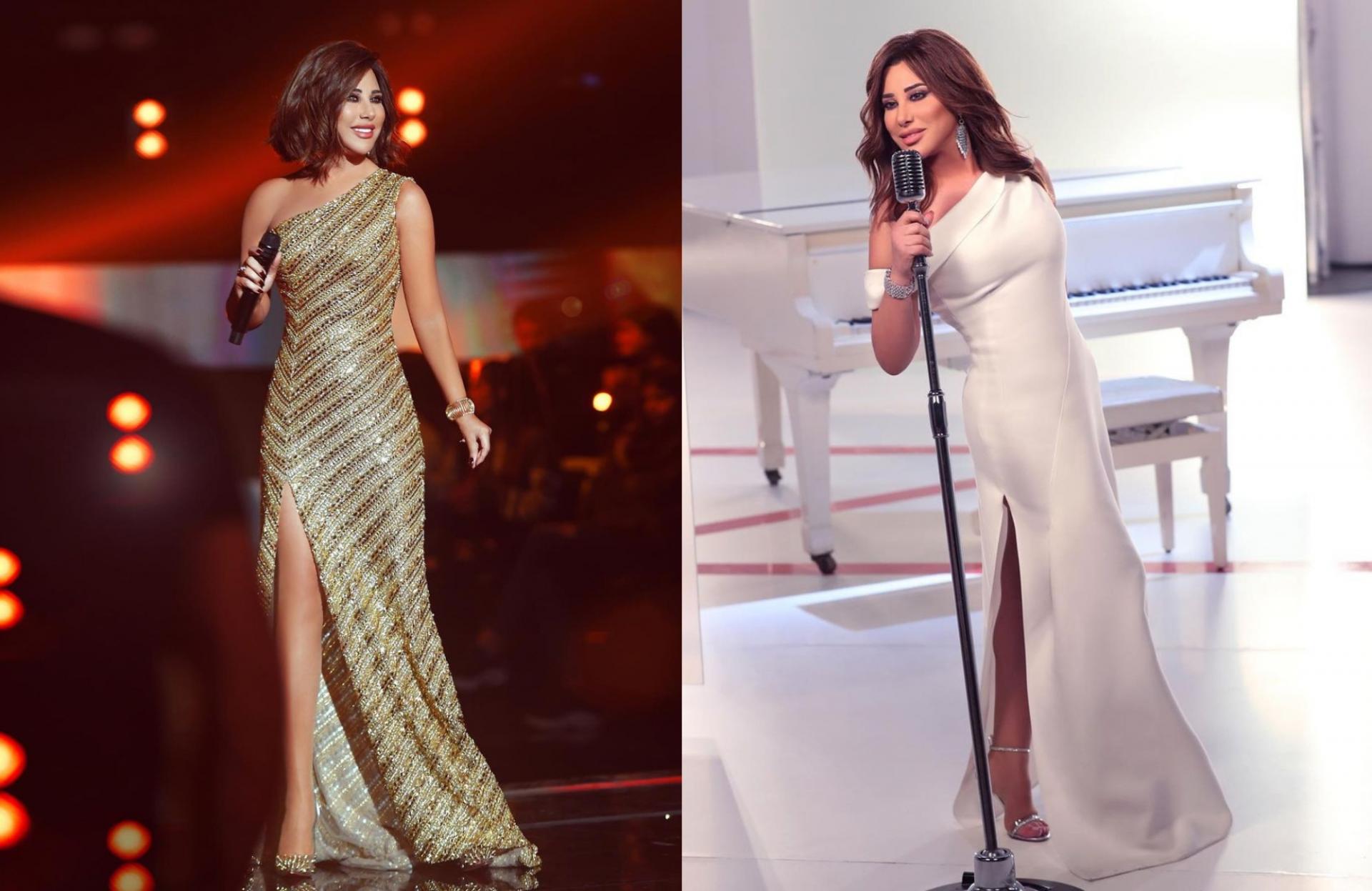 فساتين طويلة بفتحات جانبية جريئة إختارتها نجوى كرم خلال مرحلة المواجهة وخلال تصوير برومو البرنامج، واعتمدت في إحدى الإطلالات الشعر الطويل وأخرى بالشعر القصير.