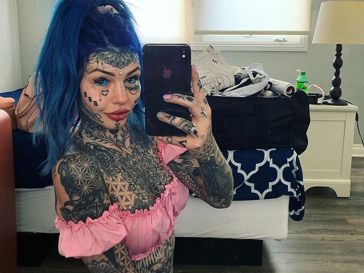 أنفقت عارضة أزياء أسترالية تدعى "آمبر لوك" أكثر من 25 ألف دولار لإجراء أكثر من 100 وشم وثقب في مختلف أنحاء جسدها، بالإضافة إلى تغيير لون مقلة عينيها.