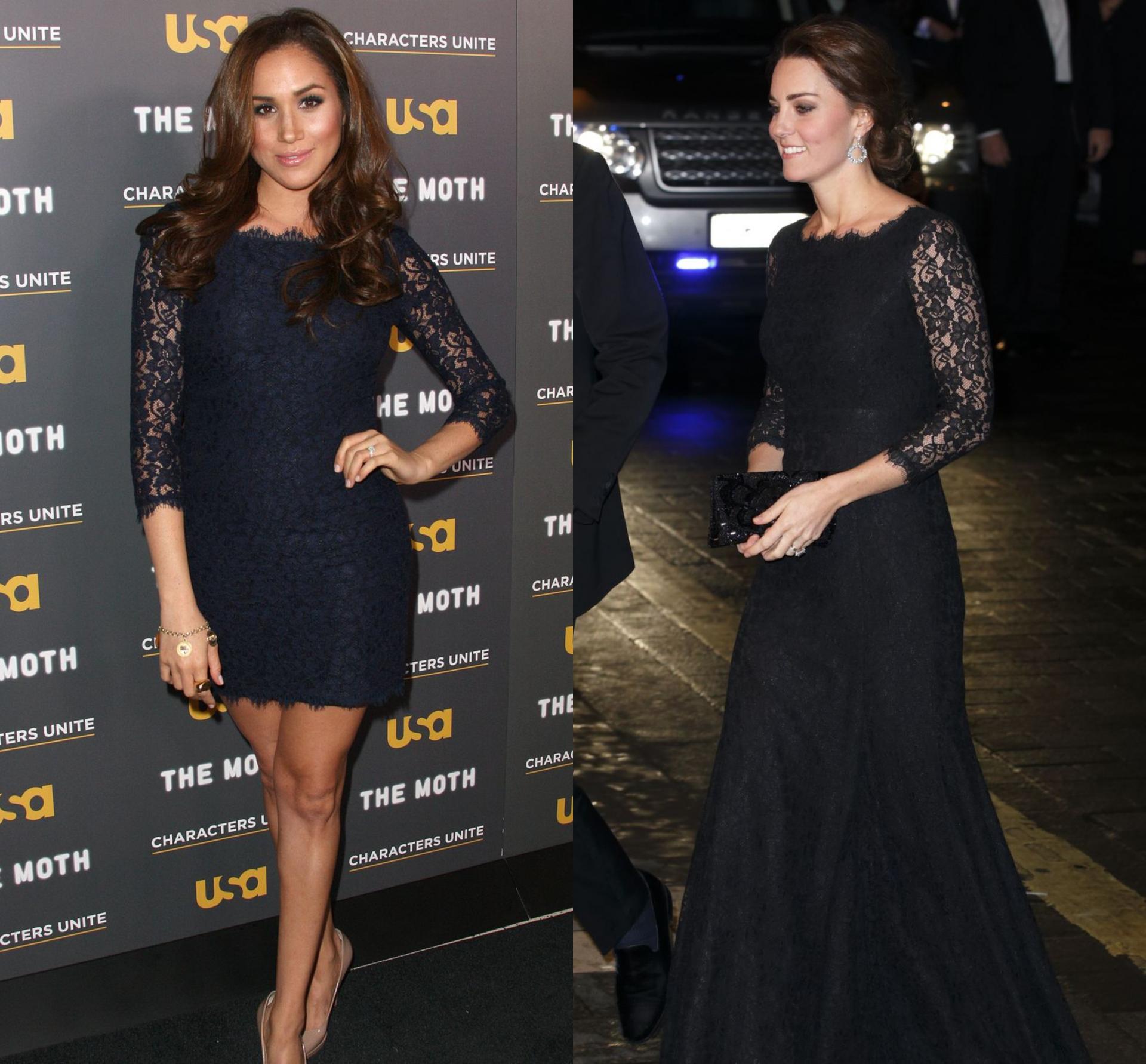 ظهرت كلًا من ميغان وكيت بنفس الفستان المصنوع من الدانتيل الأسود ولكن كيت اختارت ستايل الفستان الطويل وميغان اختارت نفس الإطلالة ولكن بستايل قصير.