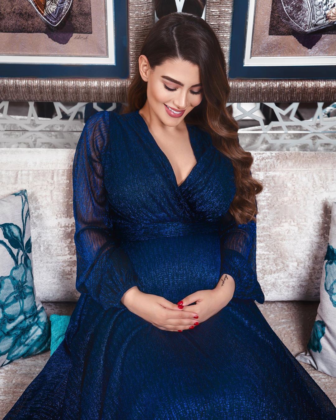 فستان بهذا اللون والتصميم سيمنح أي سيدة حامل مظهرًا جميلًا وأنيقًا على حد سواء.