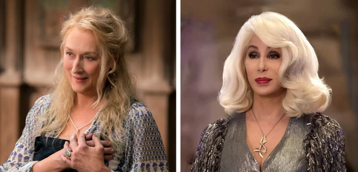 في الفيلم الموسيقي الرائع Mamma Mia، لعبت المغنية الأميركية شير دور الأم للممثلة الشهيرة ميريل ستريب ولكن في الواقع الفعلي شير كانت تكبر ستريب بثلاثة سنوات فقط وعلى الرغم من الفارق العمري البسيط برعت شير في إقناع المشاهدين بأنها والدة ستريب.